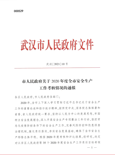 在近日公布的 “2020年度安全生產(chǎn)紅旗單位”榜單中 武漢建工榮登上榜 多次獲得該榮譽(yù) 既是肯定,也是信任,更是動力