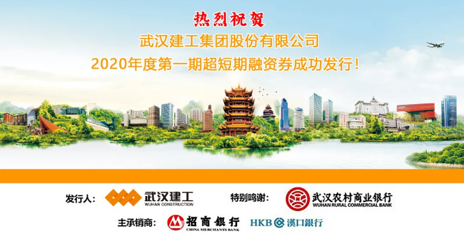 6月30日,武漢建工集團股份有限公司2020年度第一期超短期融資券成功發(fā)行,發(fā)行金額為3億元人民幣,期限270天,票面利率為3.2%,由招商銀行擔任牽頭主承銷商及簿記管理人,漢口銀行擔任聯(lián)席主承銷商。