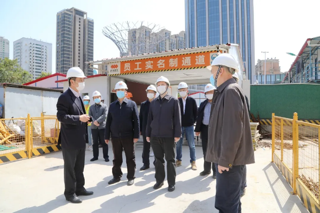 4月29日上午,武漢地鐵集團(tuán)董事長、黨委書記張軍一行實地考察武漢建工集團(tuán)承建的武漢市軌道交通8號線趙家條配套綜合開發(fā)項目一期工程,并召開座談會,了解項目疫情防控及復(fù)工復(fù)產(chǎn)情況。集團(tuán)董事長、黨委書記應(yīng)志剛,集團(tuán)總經(jīng)理、黨委副書記王火生,集團(tuán)黨委副書記、紀(jì)委書記、總工程師王愛勛,股
