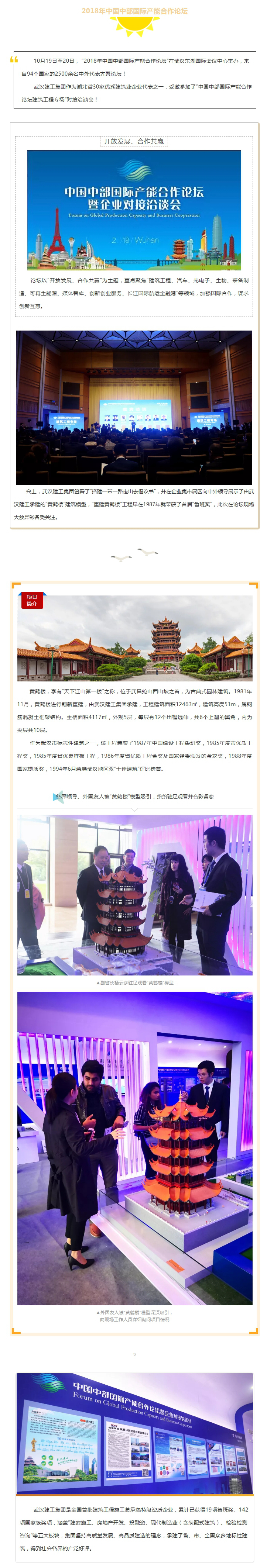 聚焦全球目光!武漢建工集團“黃鶴樓”建筑模型在“2018年中國中部國際產能合作論壇”上大放異彩
